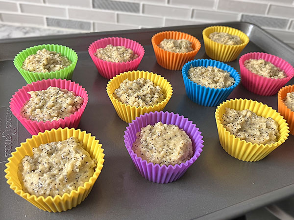 1. Preheat oven to 350F (180C). 2. In a large bowl, whisk together eggs, lemon juice, maple syrup, oil, and vanilla extract. 3. While whisking, add lemon zest, almond flour, arrowroot, baking soda, salt and poppy seeds. Mix until just combined. 4. Use a spoon to divide the batter between 12 silicone muffin cups. 5. Bake for 15-18 minutes, until a toothpick inserted in the center of a muffin comes out clean. Enjoy!