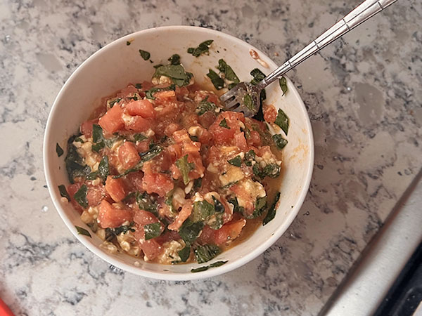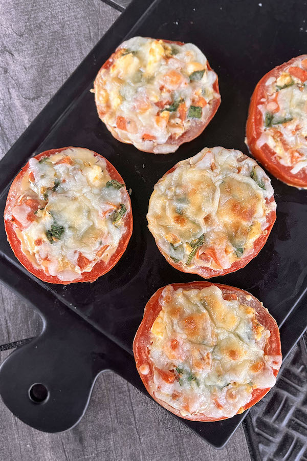 1. Preheat oven to 350F (180C). 2. Slice large tomatoes into thick rings. Use a knife to cut the inside out of the tomato slices. Transfer the rings to a baking sheet (previously lined with parchment paper). 3. Dice the insides of the tomatoes and kale. Crumble feta. 4. Crack egg into a bowl, beat the egg with a fork until the yolk and white are combined. Add diced tomatoes, kale, crumbled feta, garlic powder and Italian seasoning, season with a little salt (because feta is already salty) and pepper, stir. 5. Fill tomato rings with the mixture, sprinkle with mozzarella. 6. Bake in the preheated oven for 20-25 minutes, until the cheese is slightly golden brown.