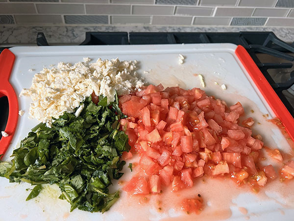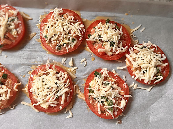 This recipe for roasted tomatoes with kale, feta and mozzarella is a truly delicious and irresistible dish. As it bakes in the oven, the flavors come together, creating a delicious and harmonious taste. Enjoy these tomato slices as a side dish or as an appetizer, they’re sure to impress your guests.