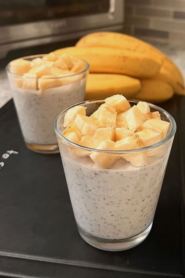 This banana chia pudding with coconut milk can make a creamy and delicious breakfast or dessert. It’s made with ripe banana, chia seeds, vanilla, cinnamon and coconut milk. The chia seeds absorb the coconut milk and create a thick and pudding-like consistency, while the banana adds natural sweetness and flavor. It's a healthy, Whole30 and paleo-friendly option that can be easily customized with additional toppings like fresh fruit, nuts, or granola.
