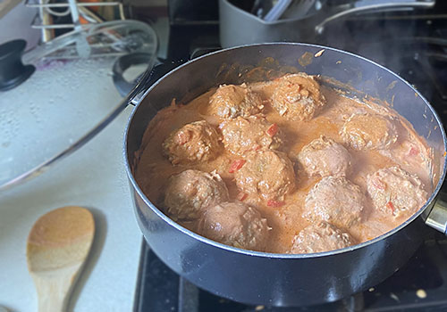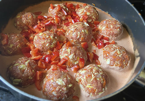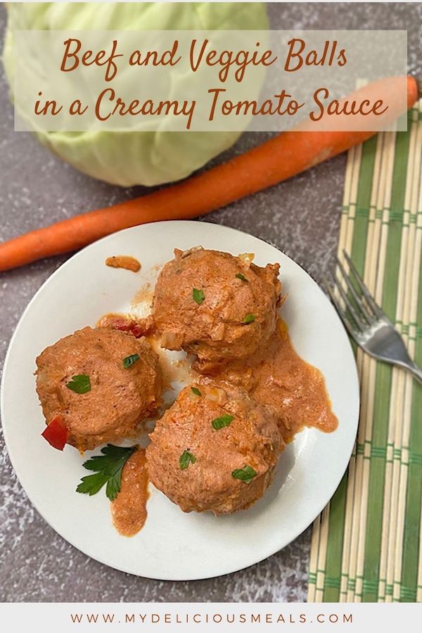 These meatballs have a great flavor of stuffed cabbage with a hint of stuffed peppers and are loaded with healthy vegetables (green cabbage, cauliflower, carrot, onion, garlic and bell pepper). Getting that many veggies in to your family will definitely make you feel good ;) Moreover, these beef and veggie balls make a complete meal that doesn’t take much effort to create but is so comforting. And you’ll like the flavor of the creamy tomato sauce.