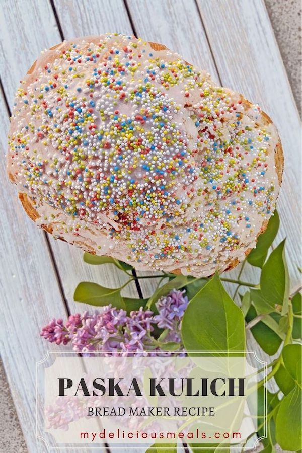 5. Using a spoon, pour the glaze over the kulich and top with candy sprinkles. Let the glaze harden and enjoy!