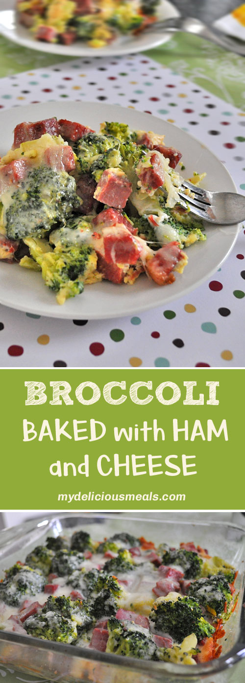 Broccoli bake with ham, cheese and eggs. It comes together easily and is great tasting, comforting and filling. You can easily use leftover corned beef instead of ham.