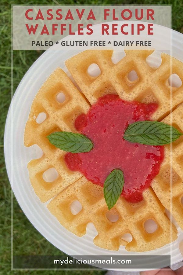 1. Separate egg whites from yolks. Beat egg whites with an electric mixer until stiff peaks form. 2. In a large bowl (I prefer a bowl with a spout), whisk together the rest of the ingredients: cassava flour, baking powder, salt, egg yolks, almond milk, avocado oil, maple syrup and vanilla extract. Use a flipping motion to fold the beaten egg whites into the batter. 3. Preheat your waffle maker to medium heat. Grease it if needed (some waffle irons don’t need to be brushed with oil). Pour the batter almost to the edges (leaving some room for expansion). 4. Cover and cook until the desired color / crispiness is achieved. Repeat with the rest of the batter. 5. While cooking the waffles, prepare the sauce. Place strawberries and maple syrup in a blender and process until smooth. Serve waffles warm topped with the strawberry sauce.