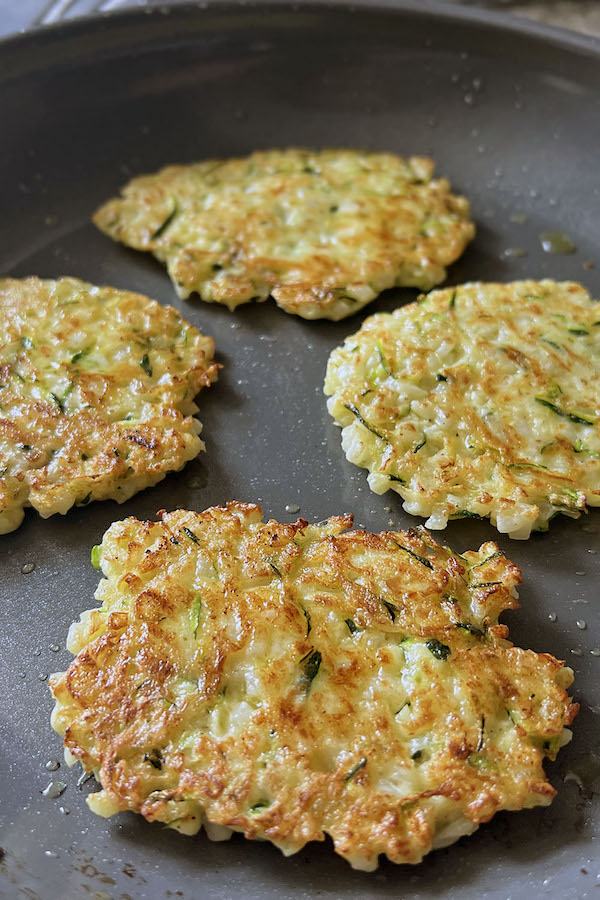 Honestly, I was a little surprised by how satisfying these were. They crisped up nicely and had a mild, refreshing flavor. I’m trying to cut back on starchy sides and these fritters were just perfect.
