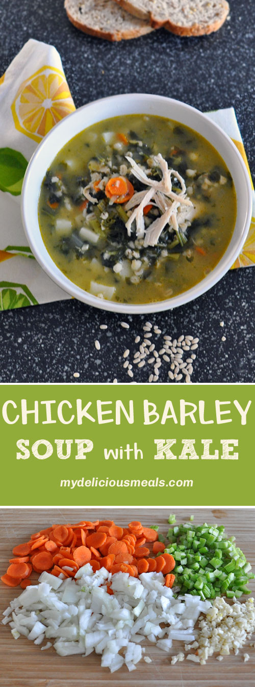 An amazing healthy comfort soup with kale, chicken, barley, carrots and onion. It's perfect and a winner for sure. I hope your family will enjoy it as much as my family and friends did!