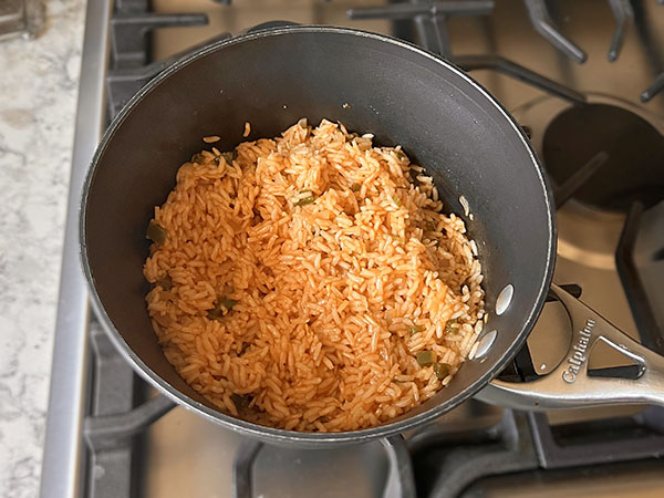 1. In a large skillet, heat 1 Tablespoon avocado oil. Sauté chopped jalapeño and garlic for a couple minutes, add rinsed rice, tomato paste, cumin, and chili powder, stir. Add chicken broth, season with salt and pepper, bring to a simmer and cook on low, covered, for 15 minutes.