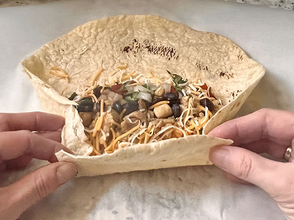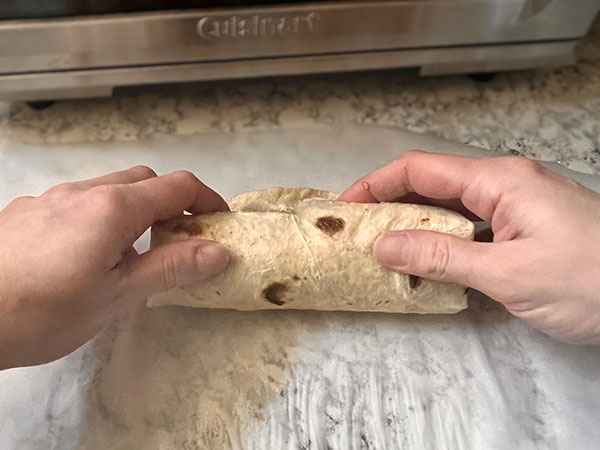 5. Fold in the sides of the tortilla over the filling and roll, tucking in the edges as you go.
