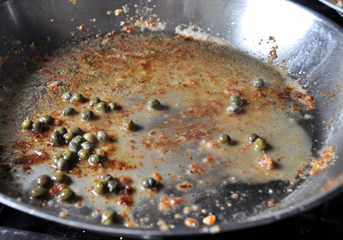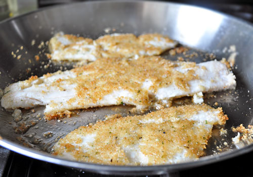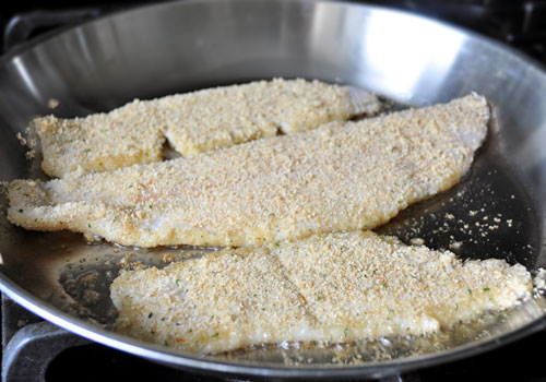 1. Lightly sprinkle white fish with salt and pepper (don't season too much, because the capers are salty) 2. Heat oil in a large skillet over medium-high heat. Coat the fish fillets on both sides with breadcrumbs. 3. Sauté for about 2 minutes, or until browned. 4. Carefully turn the fillets and sauté another 2 minutes, or until sole easily flakes with a fork. 5. Transfer fish to a plate. 6. Add butter to the same skillet and let it melt, scrab any pieces that are stick to the pan. 7. Turn off the heat, add lemon juice and capers. Stir. 8. Serve fish topped with the lemon caper sauce and sprinkled with chopped dill.