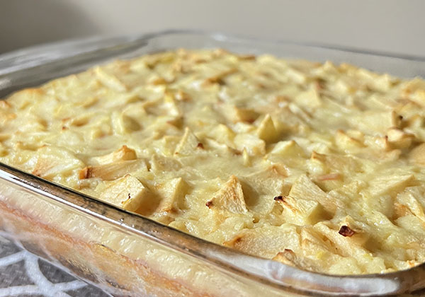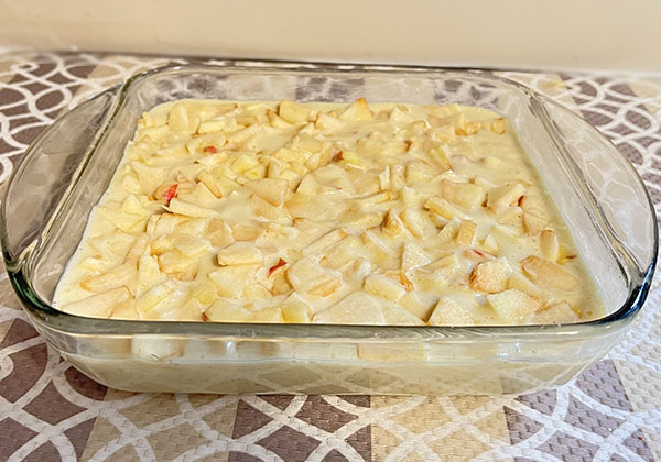 Very reminiscent of Dutch Apple Pie but so much easier to make because there’s no fussing with prepping the crust or having to carefully layer the ingredients. Goes well with a cup of hot coffee or tea.