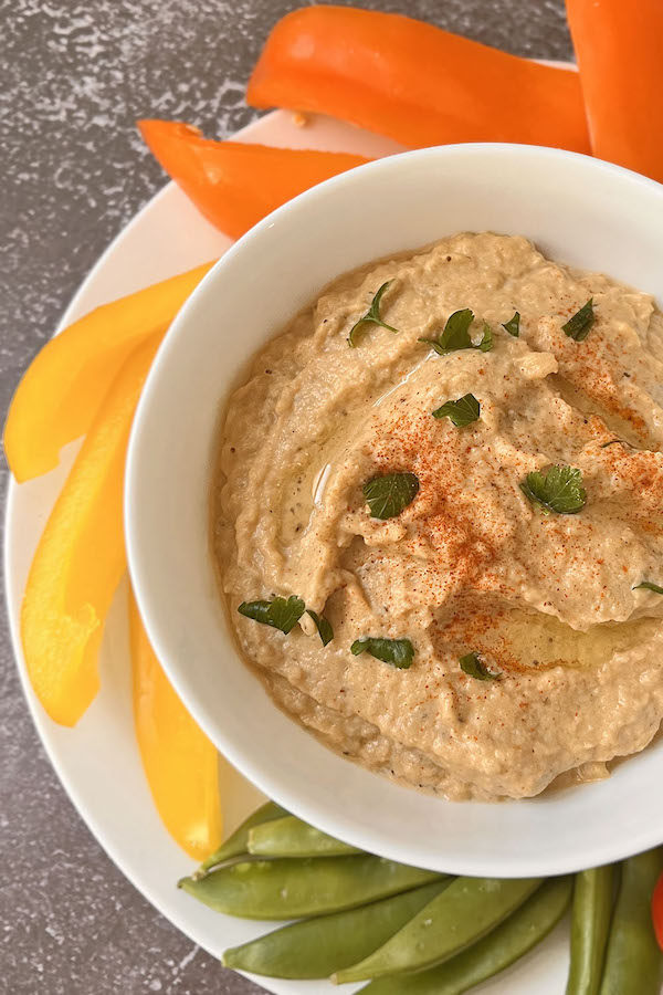 This easy Baba Ganoush dip recipe is perfect for when you need a delicious and healthy dip. Roasted eggplant, garlic, lemon juice, and paprika come together to create a flavorful dip that's sure to please. The pinch of cumin adds a little extra spice and complexity to the dip, making it perfect for dipping fresh veggies or pita chips. Perfect choice for those following Paleo or Whole30 diet.