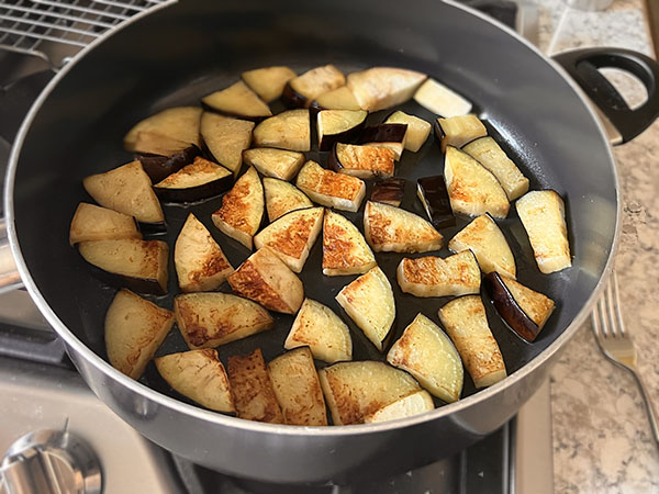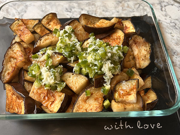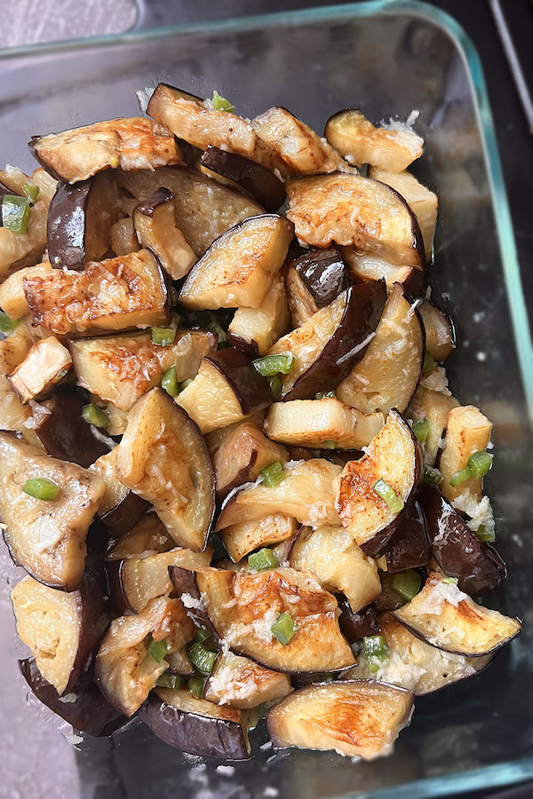 There are many sautéed eggplant recipes around but this lightly marinated garlicky eggplant recipe is probably the best way to cook eggplant. Cooking eggplant is very easy, you just quickly fry chopped eggplant in a small amount of oil on both sides until soft and nicely golden brown. The addition of garlicky vinegar brings eggplant to the next level, while jalapeño adds some nice crunchiness. Steal this eggplant appetizer idea for your next gathering and you’ll see how quickly it disappears. And the best part is, it can be prepared even 3 days in advance.