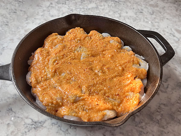 1. Preheat your grill to 250F (120C). 2. Rinse shrimp and pat dry with paper towels. 3. In a bowl, combine ghee, lemon juice, garlic, smoked paprika, salt and red pepper flakes. 4. Arrange shrimp evenly across the bottom of a cast iron skillet (mine was 10”). Top with the ghee mixture, use a spoon to spread. 5. Place the cast iron skillet with shrimp on the grill grates, close the grill lid and cook the shrimp for approximately 15 minutes. They should turn pink and opaque when cooked through. Enjoy!