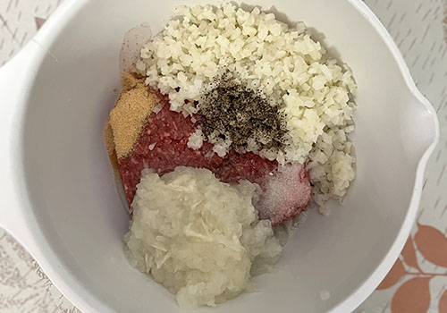 My kids love these ground beef and veggie patties and they don’t even know that I use cauliflower instead of bread. Paleo, Whole30 and gluten-free, they make a healthy, tasty addition to any meal. Precook them, then heat and eat with whatever else you feel like, our favorite options are: mashed potatoes and dill pickles, baked potato wedges, roasted vegetables, gluten free pasta, or even with eggs for breakfast.