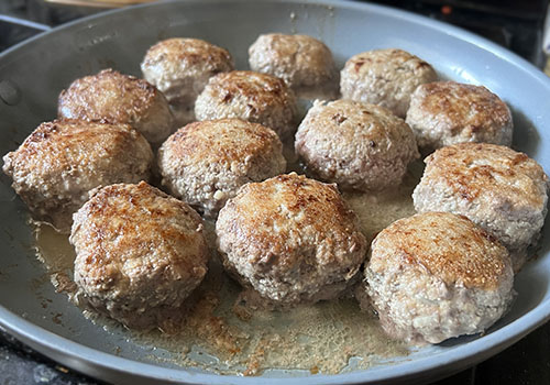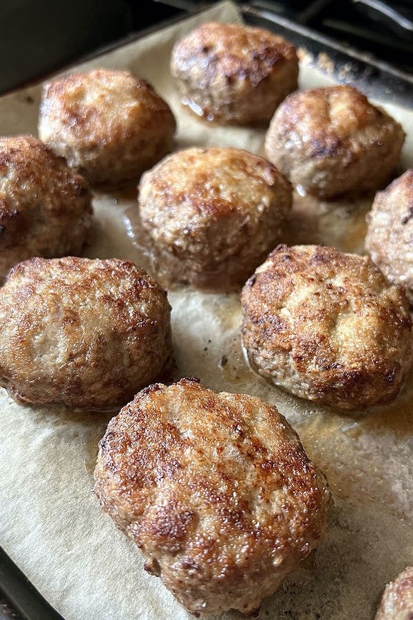Thank you! I like to finish these in the oven, since 85% Lean / 15% Fat ground beef is used in this recipe, they still stay juicy inside with a nice color outside. If you prefer, you can finish them on the stove top. After searing, add a little water, cover and cook on low for 15-20 minutes. - Alena