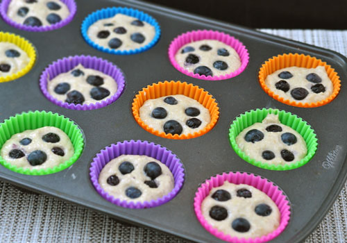 1. Preheat oven to 380F (190C). 2. Place bananas, eggs, Greek yogurt, maple syrup, baking powder, baking soda, vanilla extract, cinnamon, salt and oats in a high-speed blender (don't make my mistake, it's better to add oats last, this way they don't get stuck at the bottom). 3. Blend until smooth. Stir in finely chopped pecans (you can also stir in half of the blueberries at this point, or leave them all for topping), divide the batter evenly among silicone muffin cups (if not using silicone cups, make sure to grease your muffin tins or paper liners, so muffins don't stick). 4. Top muffins with the blueberries. Bake in the preheated oven for 18-20 minutes (toothpick inserted in the middle of the muffin should come out clean). Let cool a little and enjoy!