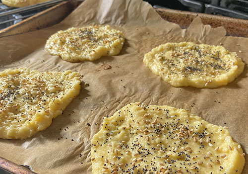 1. Preheat oven to 350F (180C). Line baking sheet with parchment paper. 2. In a bowl, combine dry ingredients: almond flour, arrowroot starch, coconut flour, baking powder and salt. Add eggs, oil and water, mix until smooth. 3. Scoop the batter onto the prepared baking sheet about 2” apart to make 8 hamburger bun halves. Sprinkle with poppy seeds and sesame seeds if desired. 4. Bake in the preheated oven for 8-10 minutes, until set and light golden brown. Let cool to almost room temperature, use two pieces when making your burger or sandwich (one for top, second for bottom).