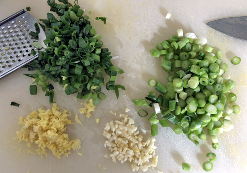 зеленый лук 5 штук (нарезанный мелкими колечками, отдельно отложить светлые и зеленые части)