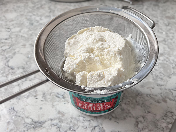 1. Use a fine mesh sieve to strain ricotta. I left it to strain for 30 minutes. Discard the liquid.