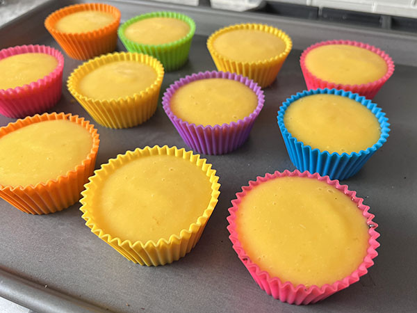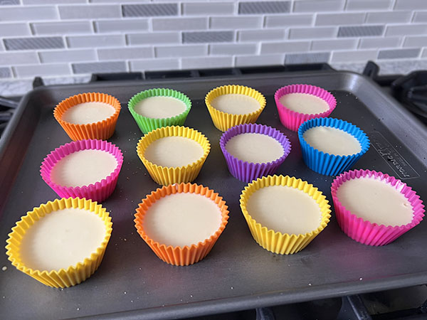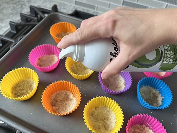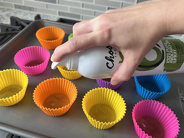 4. Prepare 12 silicone muffin cups. Spray each cup with avocado oil.