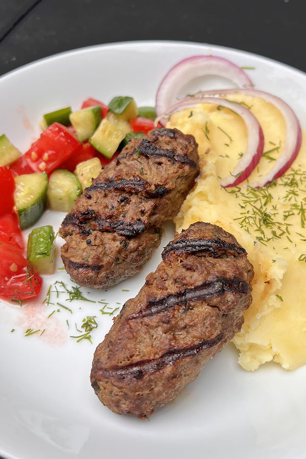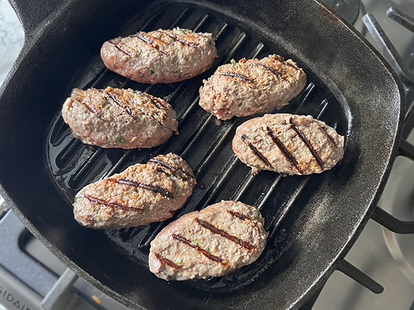 4. These kebabs can be cooked in a skillet, on a grill or in the oven. I cooked mine in a cast iron grill skillet to get the nice grilling marks (for 3-4 minutes per side),