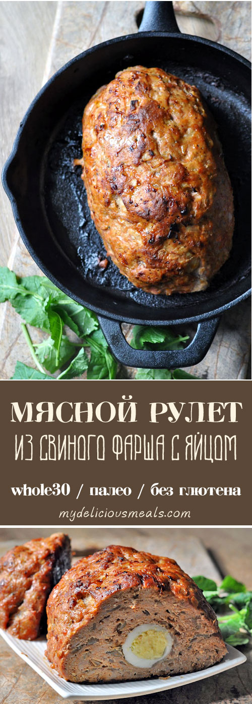 7. Покрыть оставшейся мясной смесью и аккуратно сформировать рулет в виде буханки.