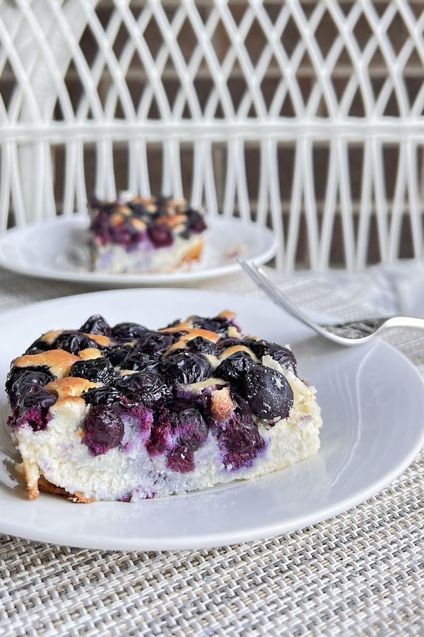 1. Preheat oven to 350F (180C). 2. In a bowl, whisk together all the ingredients (coconut flour, eggs, coconut milk, maple syrup, vanilla extract and salt), except blueberries. 3. Pour the batter into a baking dish (I used Pyrex 2.2qt glass dish, 11.1"L x 7.1"W x 1.7"H). Top with blueberries. 4. Bake for 40-45 minutes. 5. Let slightly cool and enjoy!