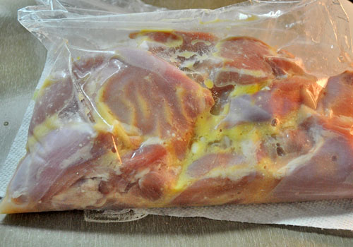 1. Place chicken thighs into a large ziplock bag, pour pickle juice over chicken. Shake the bag, close and refrigerate for 2 hours (don't leave overnight).