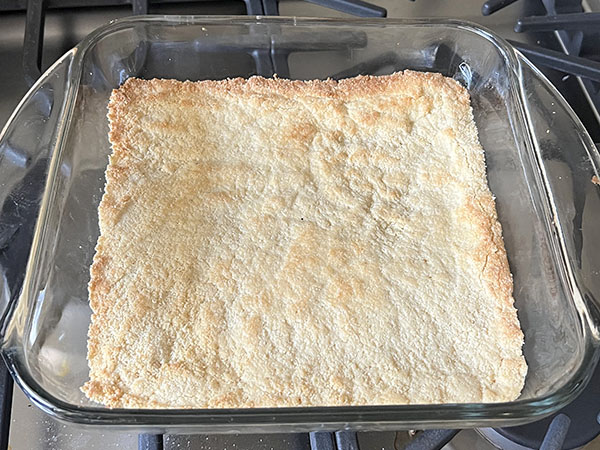 3. Bake on the center rack of the preheated oven for 10 minutes, until lightly golden brown. Remove from the oven and let it cool (leave the oven hot).