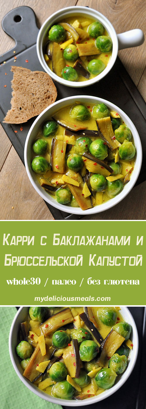 Сочетание баклажанов, брюссельской капусты, яблока и специй делает это овощное карри особенным. Оно очень быстро готовится и приобретает насыщенный, слегка островатый сливочный вкус (любители острого могут добавить немного больше красного перца). Отлично сочетается с рисом (на диете Whole30 используйте рис из цветной капусты).