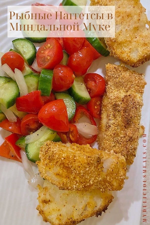 Полезные рыбные наггетсы из трески, обваленные в яйце и миндальной муке, запеченные в духовке. Вместе с салатом - отличный вариант ужина в будний день, когда особо нет времени на готовку. Мой любимый вариант подачи - с соусом из майонеза, тертого огурца и небольшого количества острого соуса. Если Вы являетесь счастливым обладателем Cuisinart Air Fryer Toaster Oven, можно готовить наггетсы и там, около 10 минут на режиме air fry, нет необходимости переворачивать.