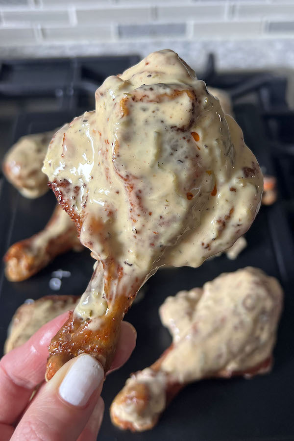 These juicy and flavorful chicken drumsticks are perfect for a quick and easy dinner. The legs are opened up using the butterfly method, then seasoned with a perfect blend of smoked paprika, garlic powder, and onion powder. They are then roasted in the oven and served with a zesty pickle mayo sauce.