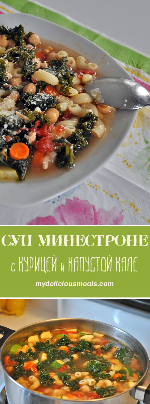 8. Добавить макароны, морковь, кале, цуккини и нут, готовить еще минут 7.