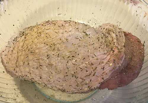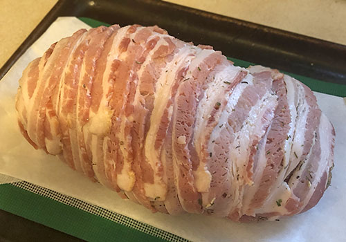 It takes way less time to prep, and the cook time is significantly shorter, requiring only a fraction of the time compared to a whole turkey. You don’t even have to do a bacon weave with your slices of bacon, it's that simple.